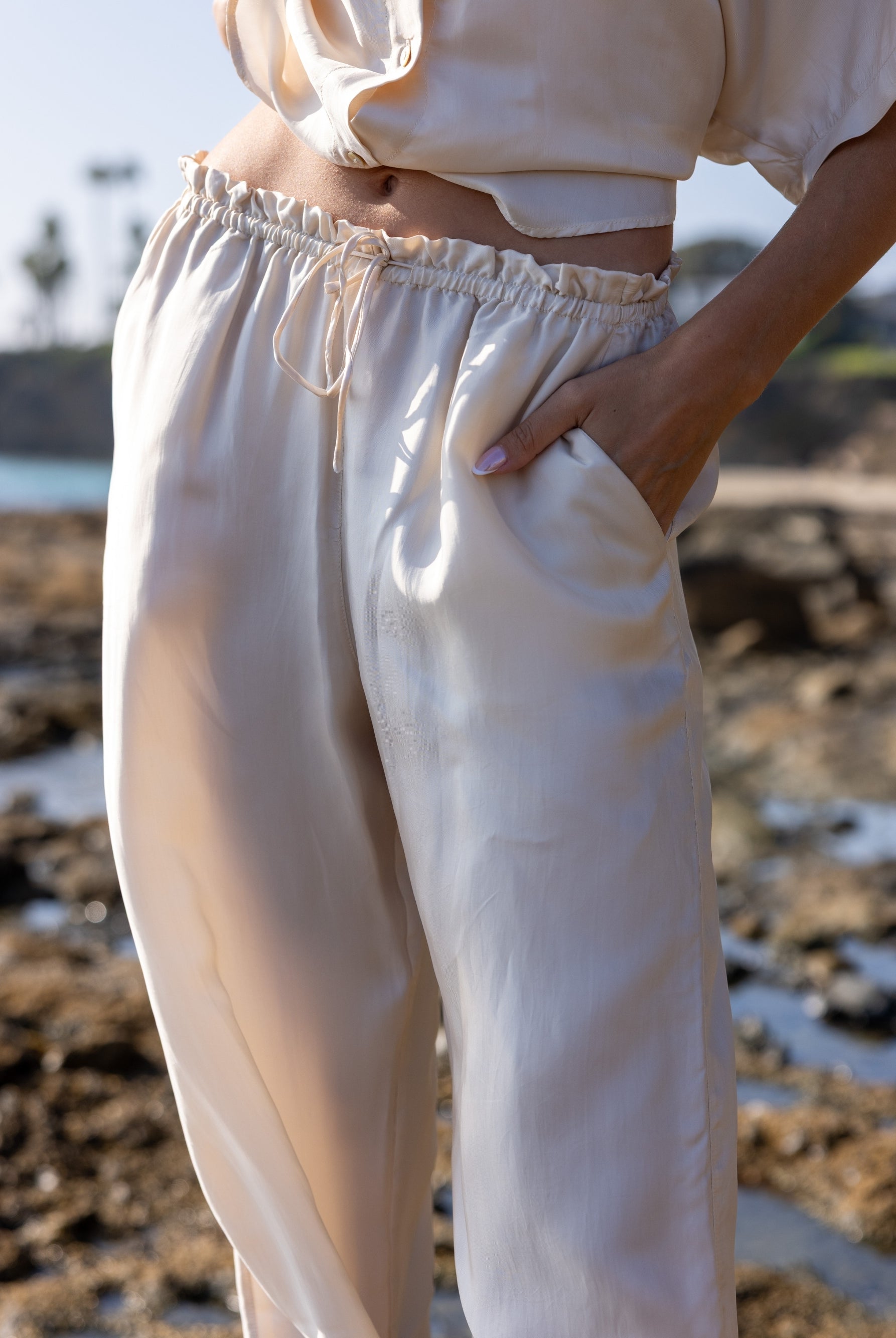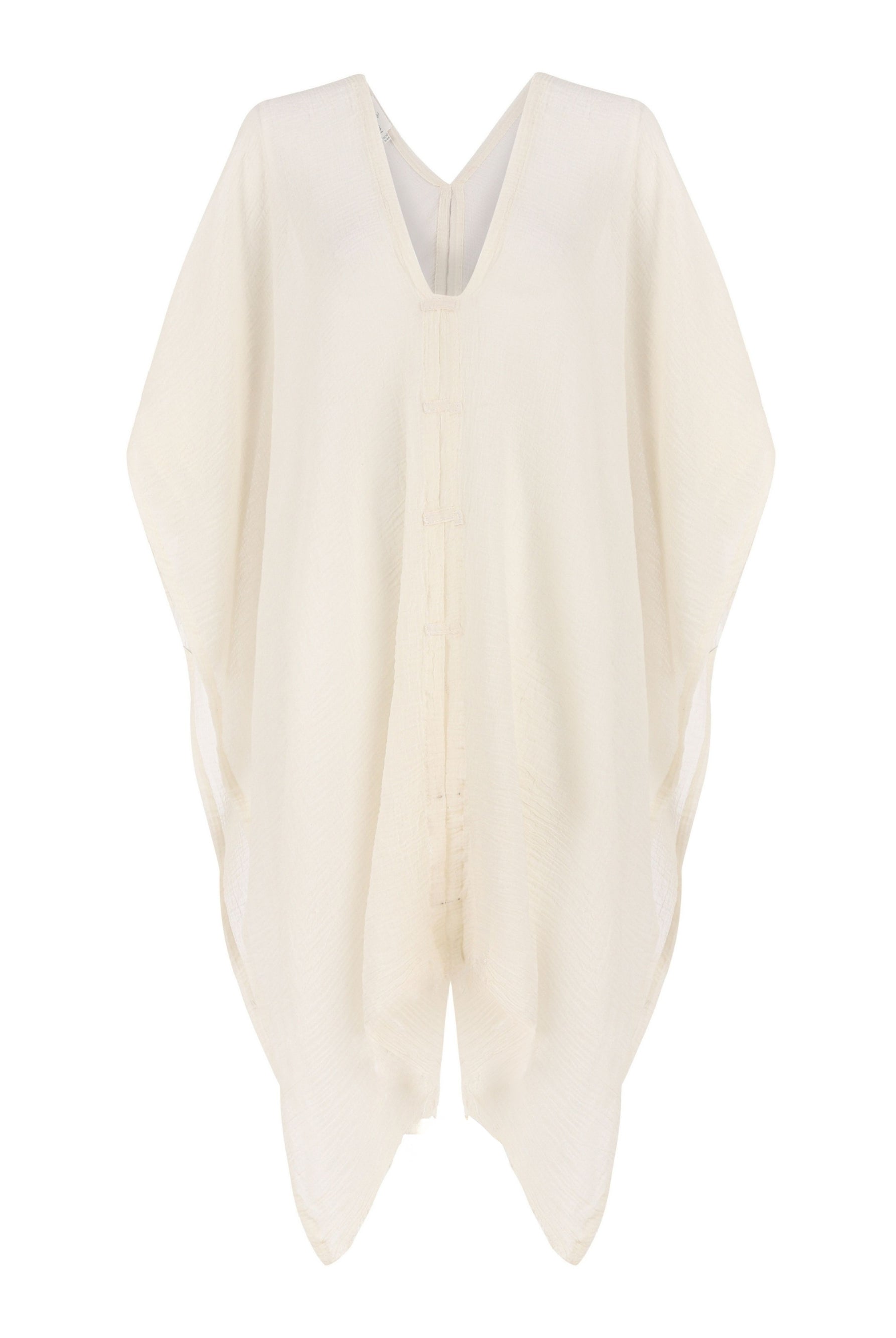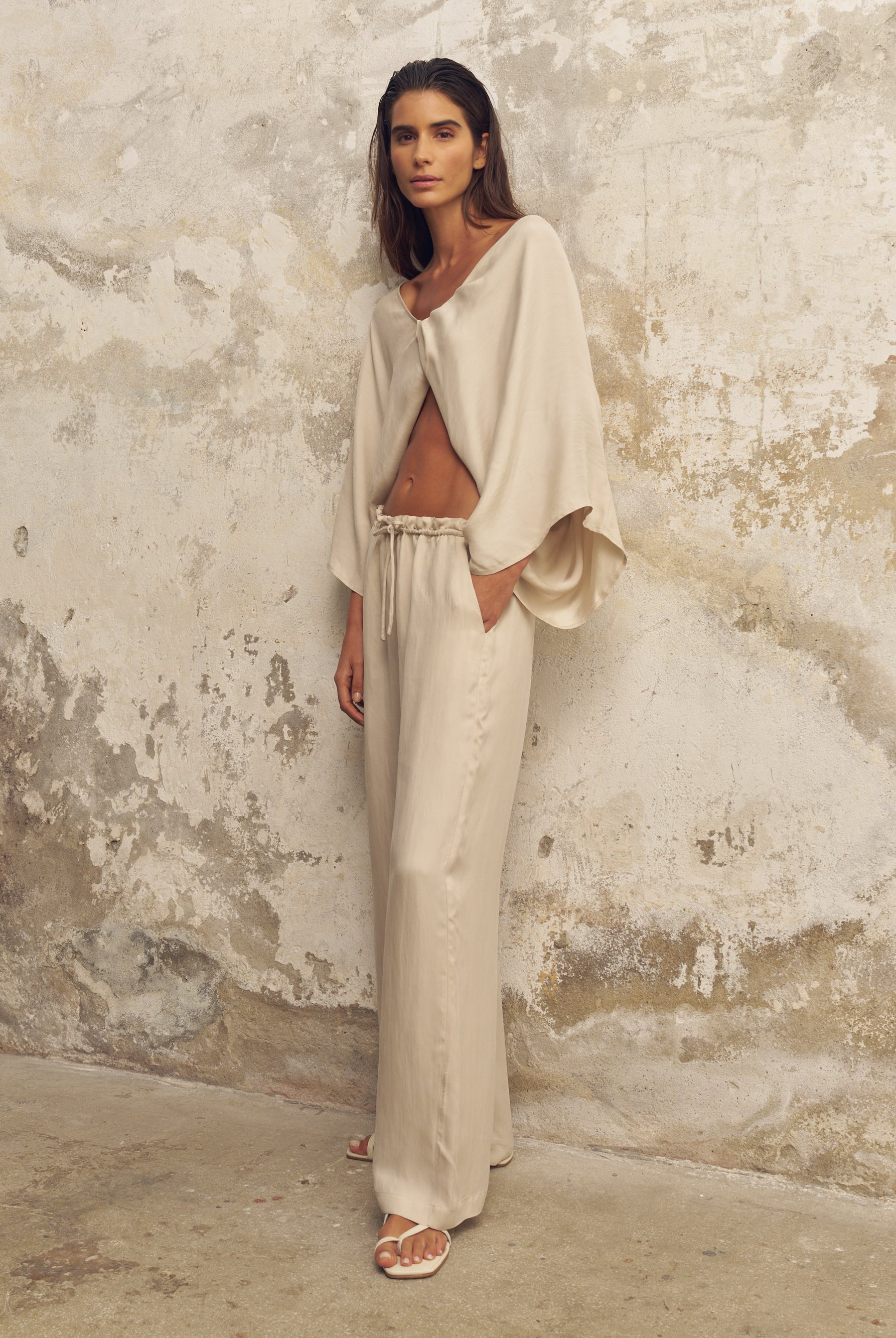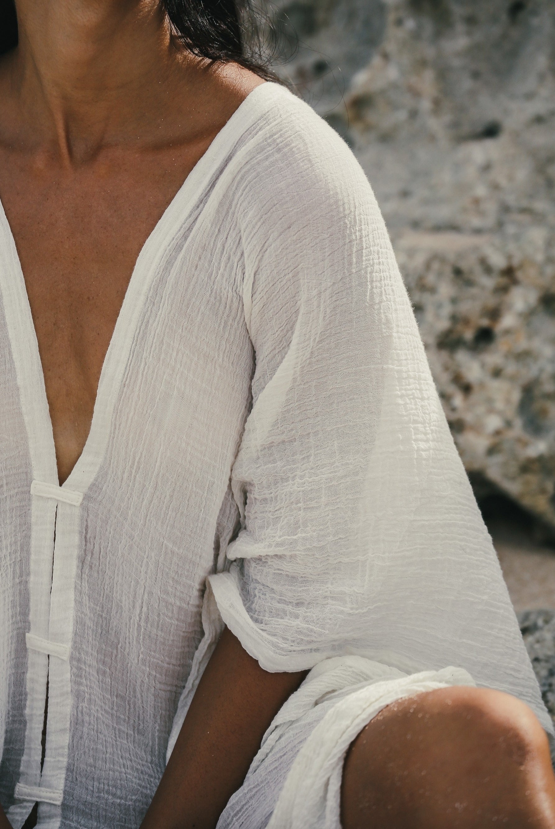 The billowy flow of this top pairs perfectly with cut-off shorts for a beachy, casual look.