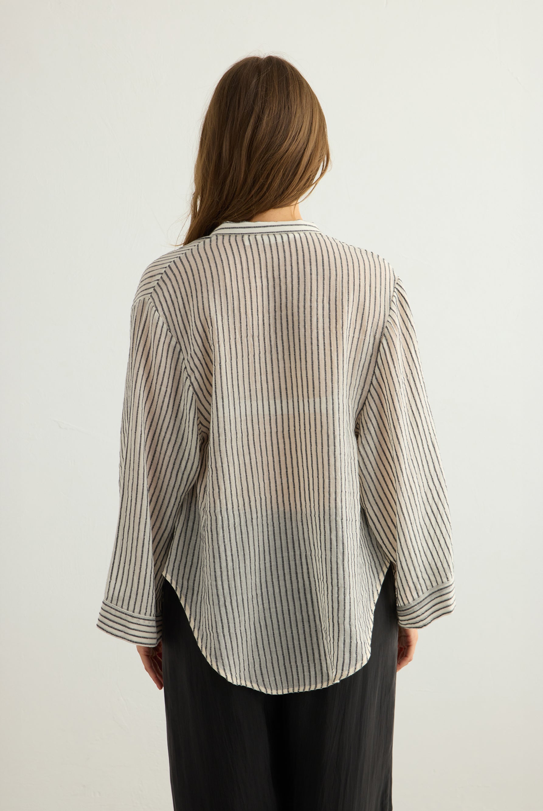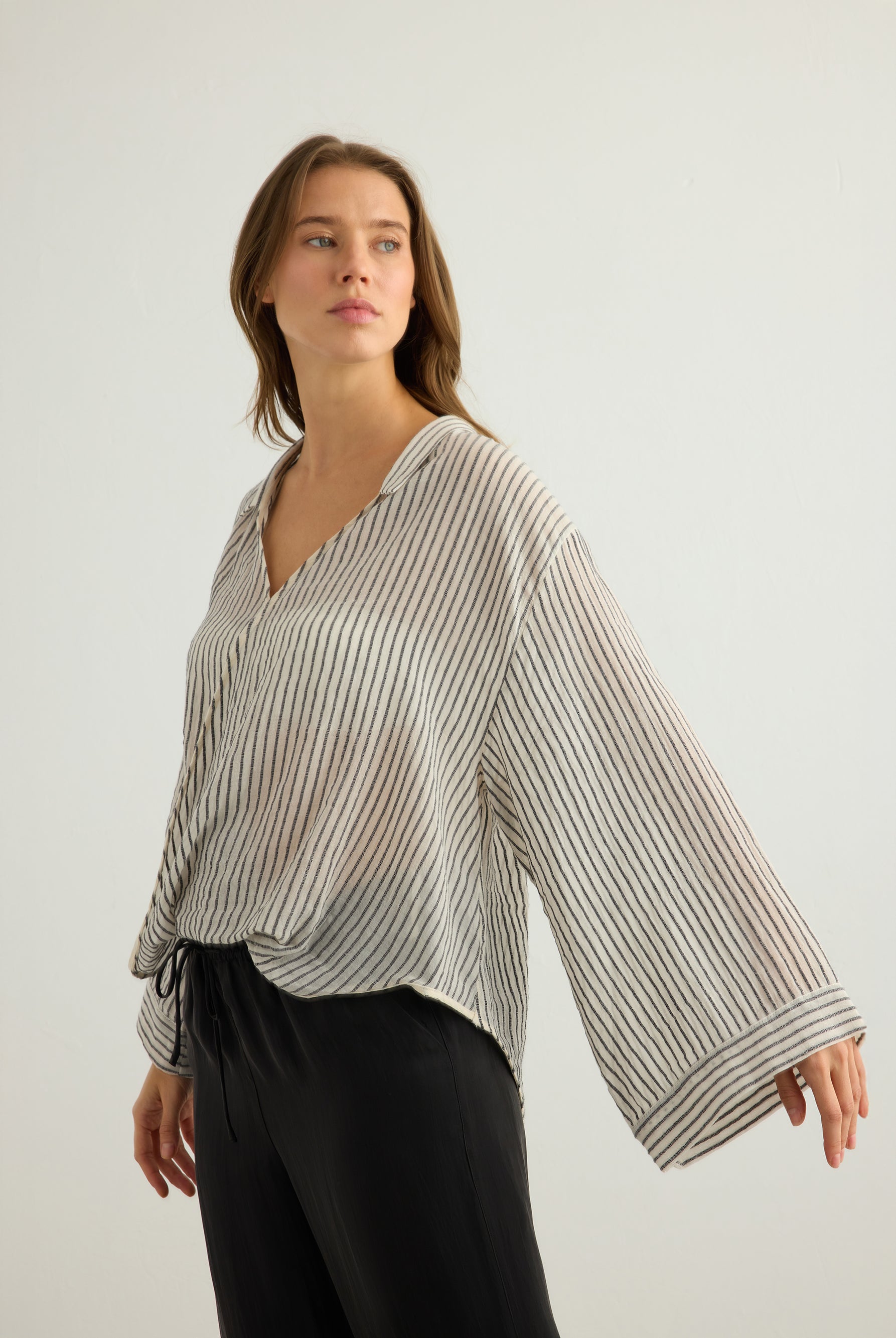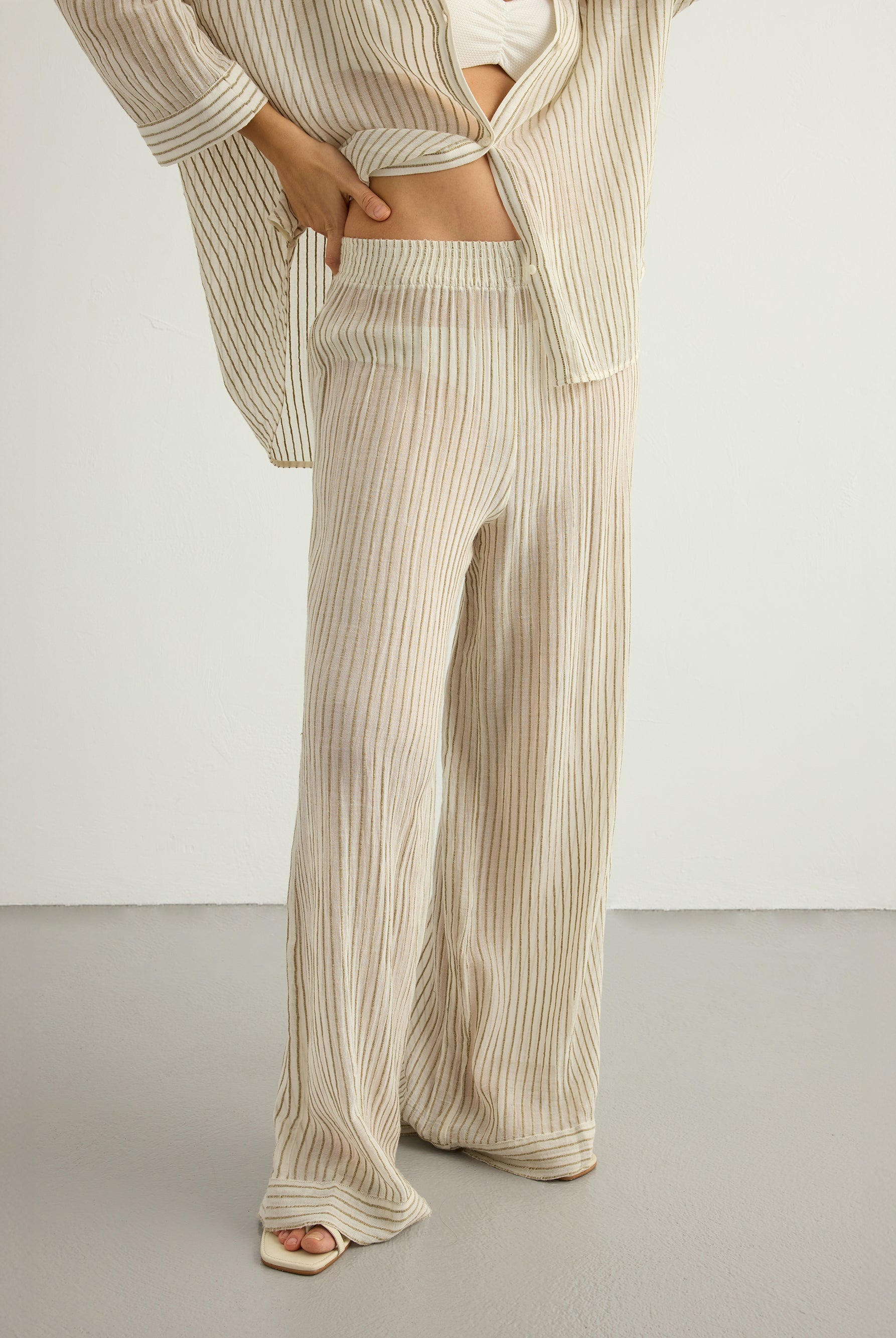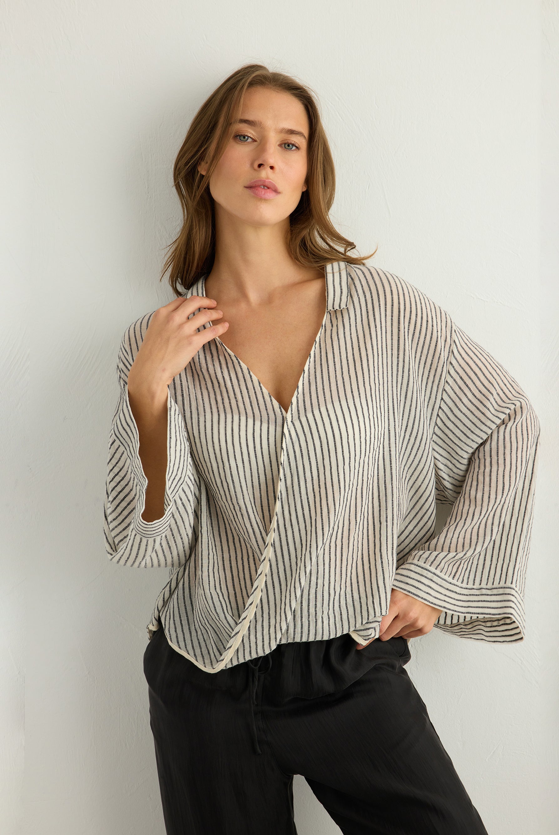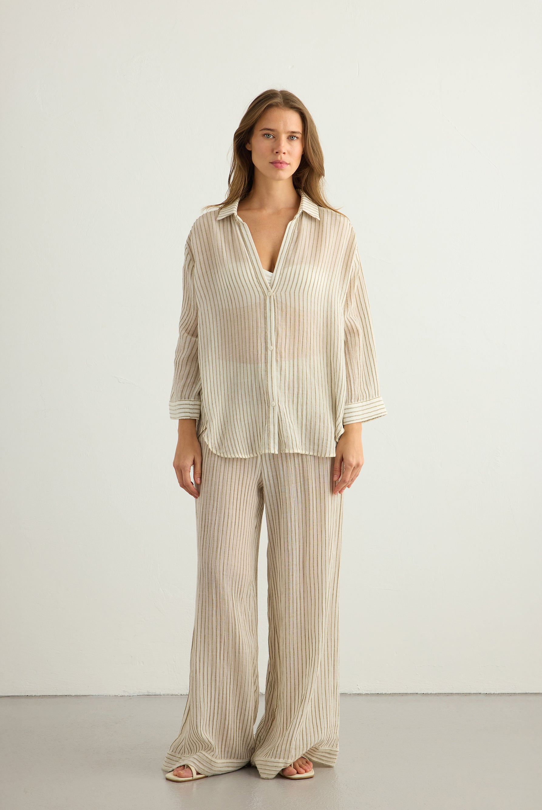 A playful yet timeless exploration of pattern. This collection reimagines classic stripes in layered textures and natural tones, crafted from 100% Organic Turkish cotton. Effortless silhouettes meet rhythmic lines, creating pieces made for everyday ease and summer light.
