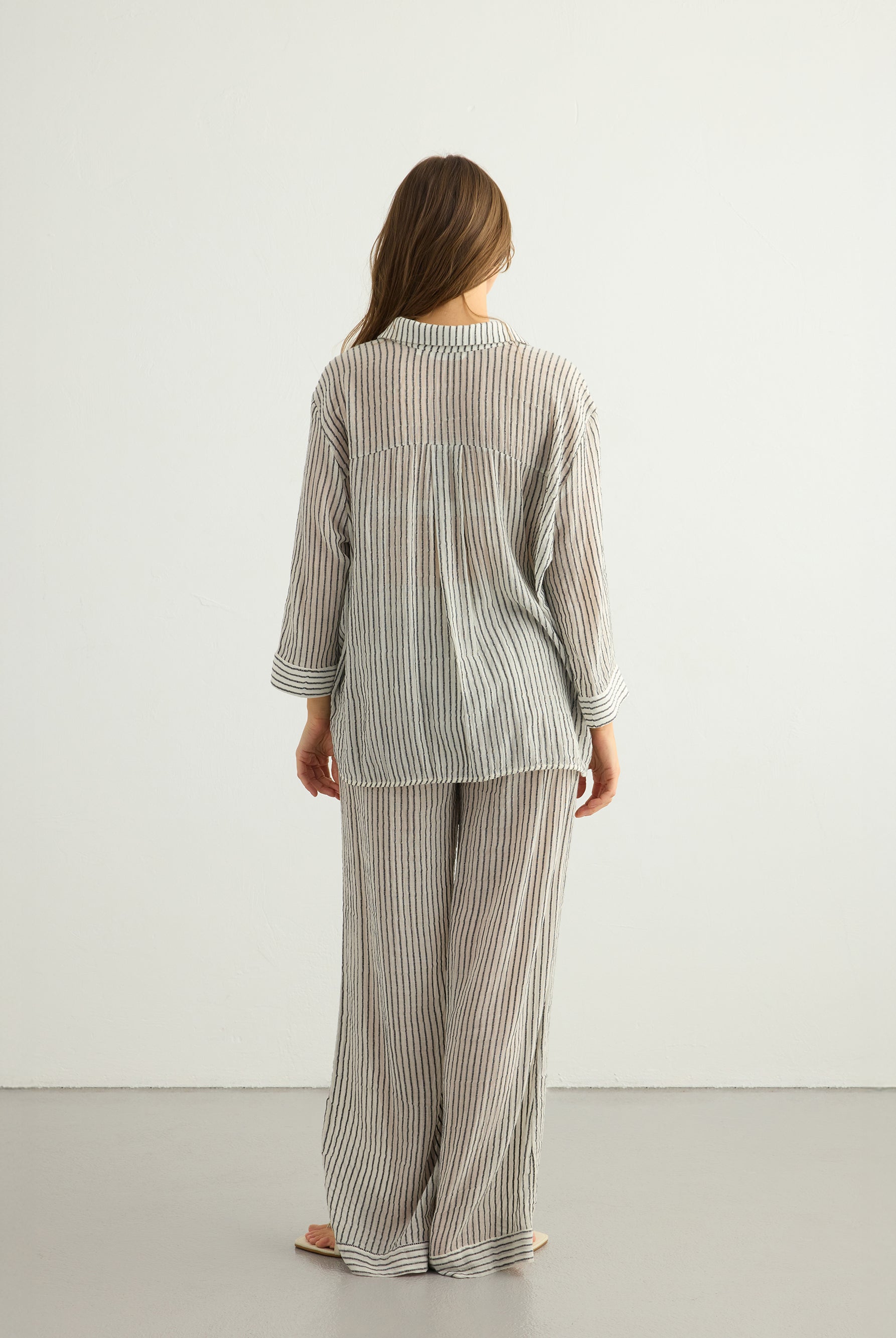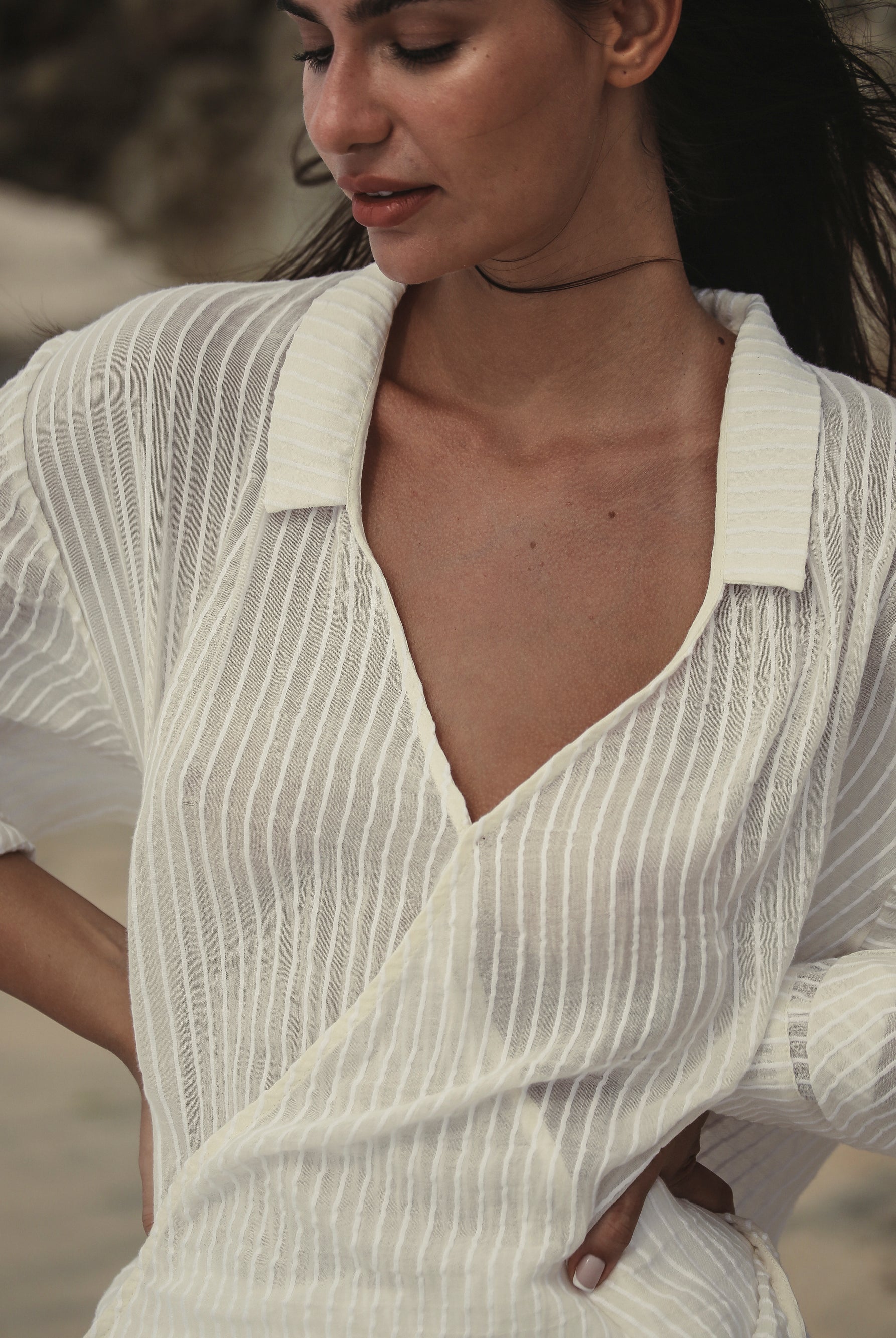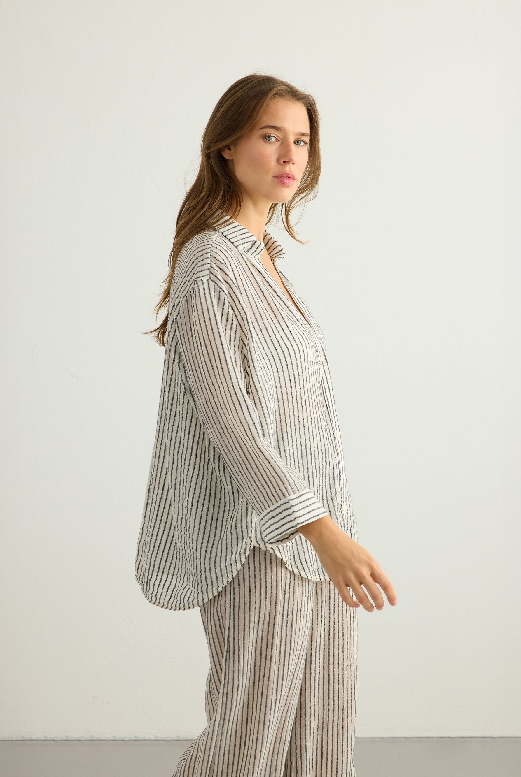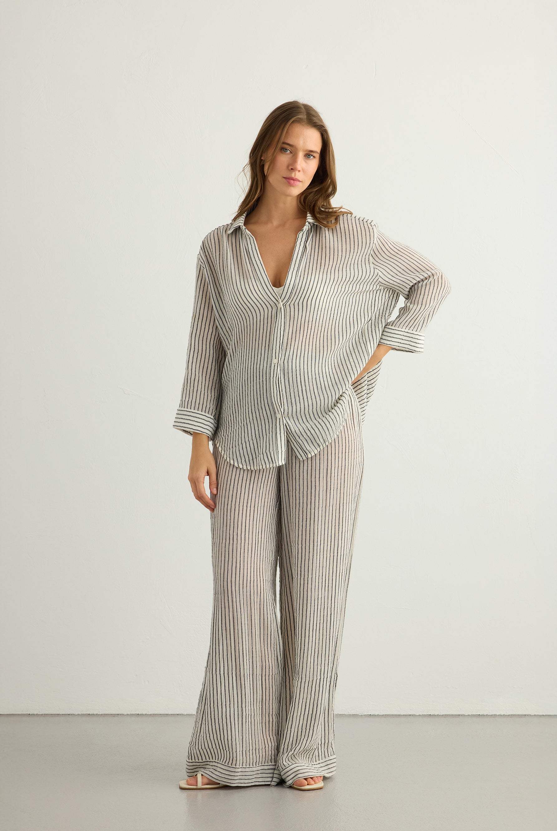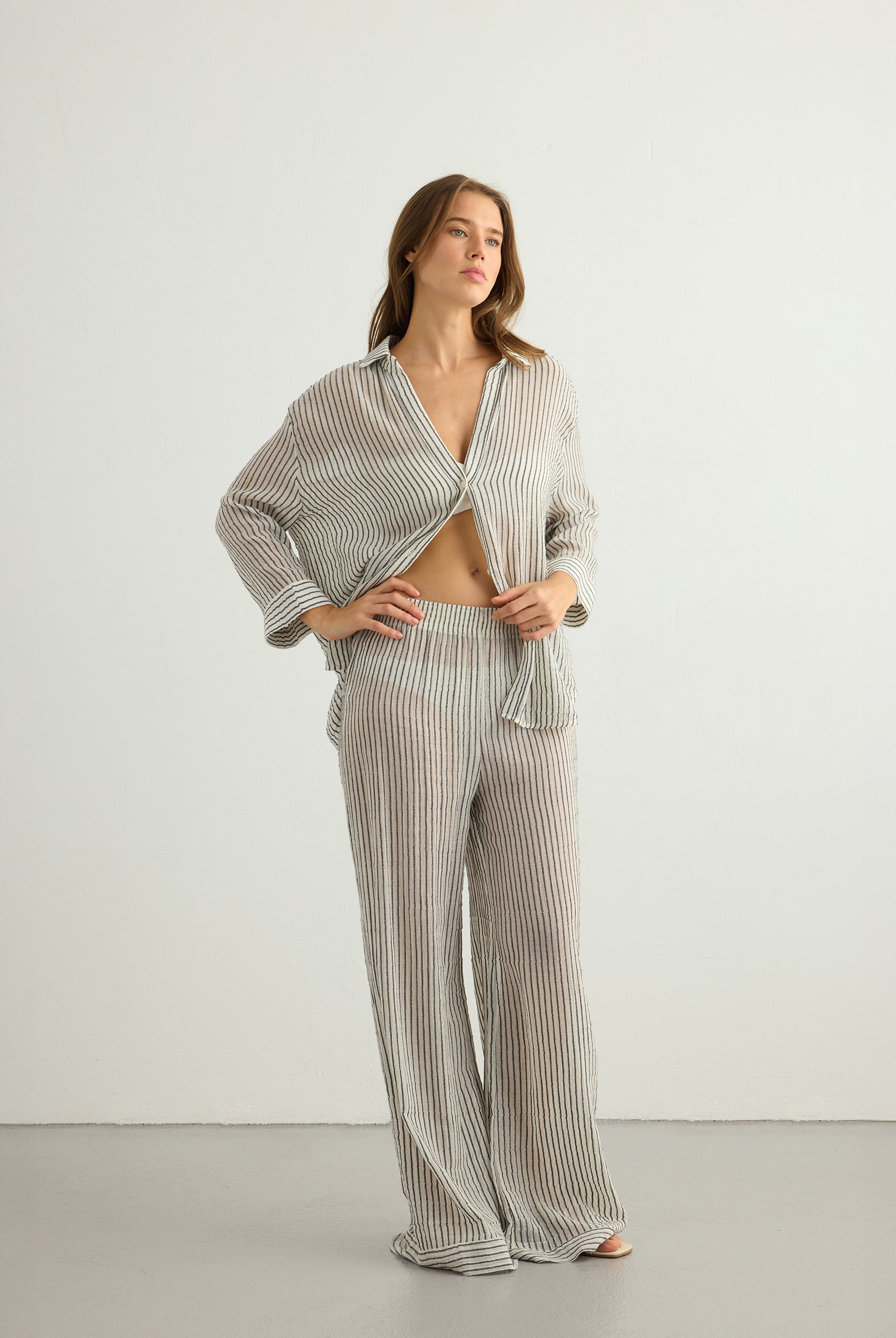 A playful yet timeless exploration of pattern. This collection reimagines classic stripes in layered textures and natural tones, crafted from 100% Organic Turkish cotton. Effortless silhouettes meet rhythmic lines, creating pieces made for everyday ease and summer light.