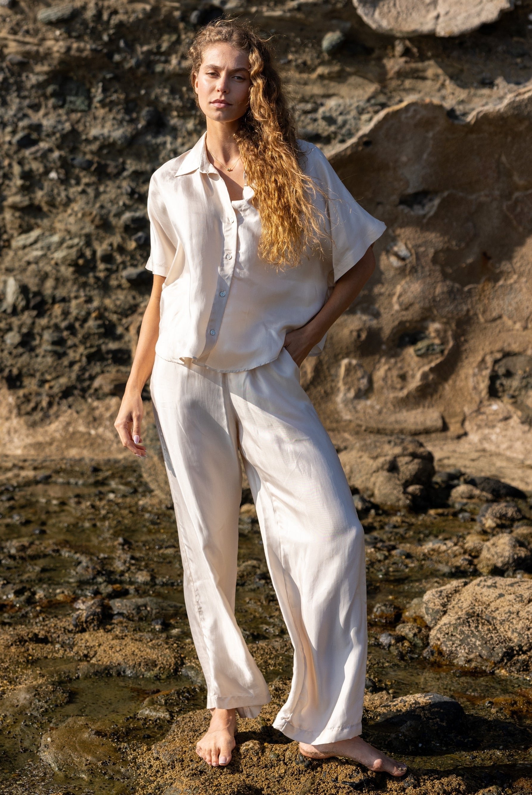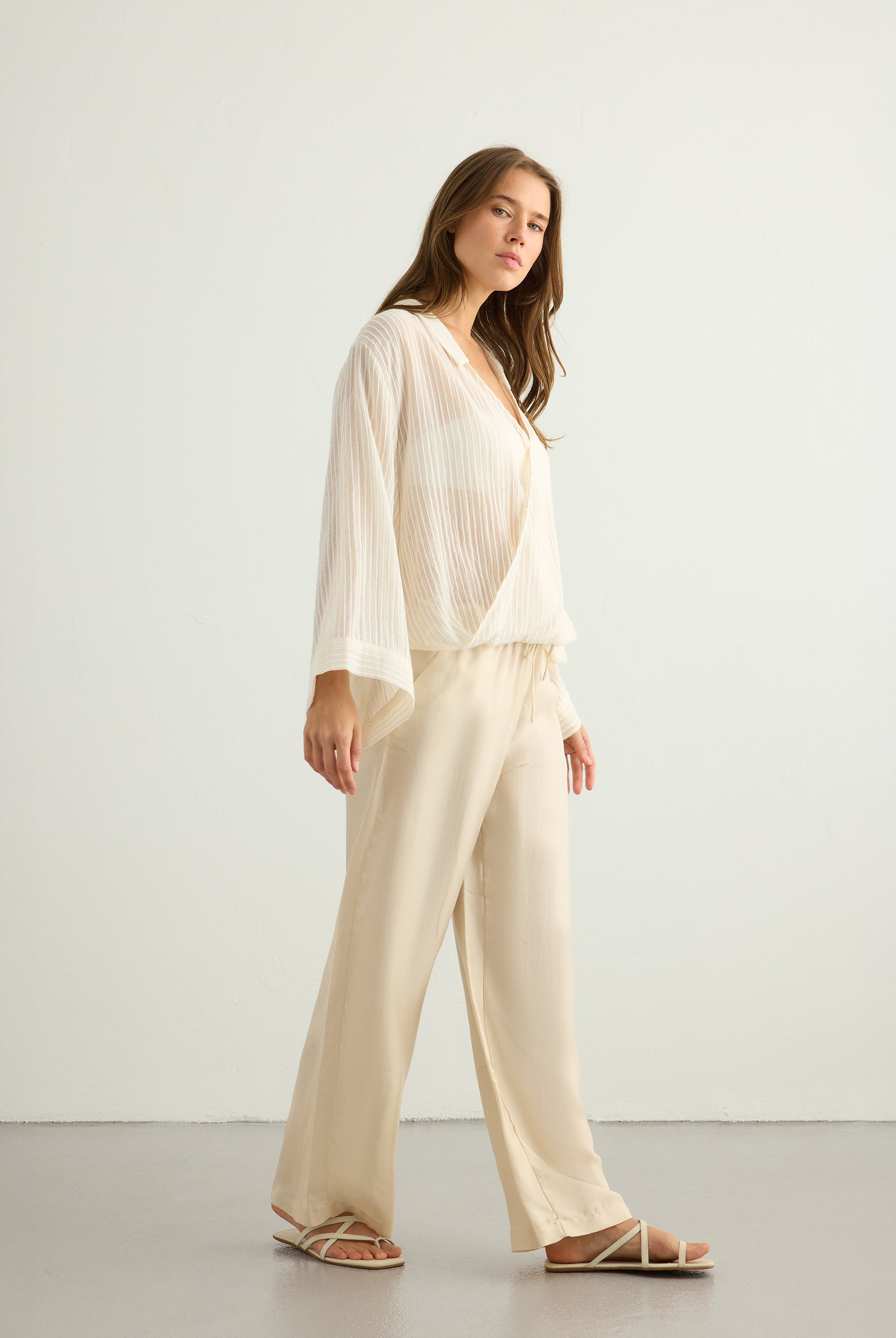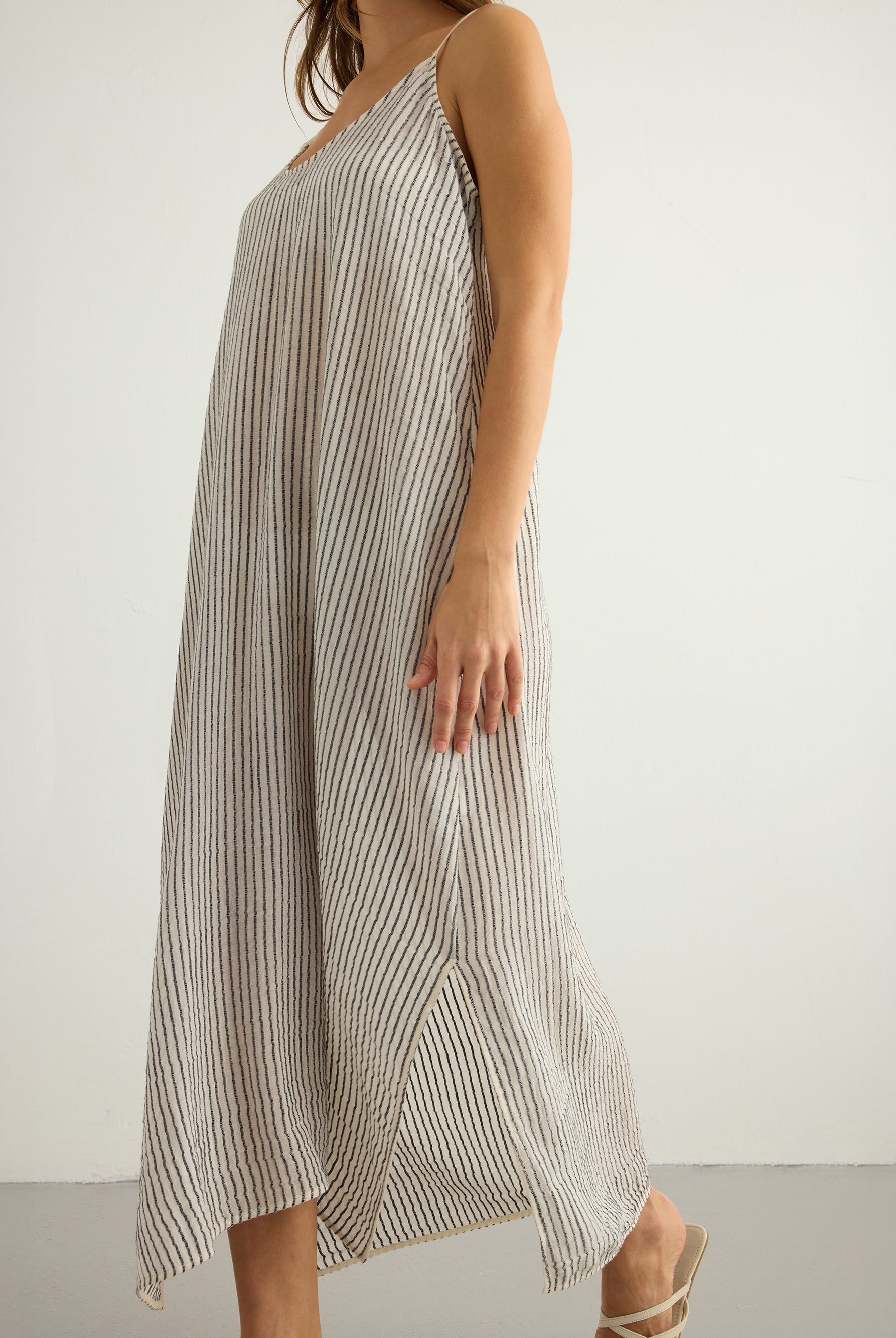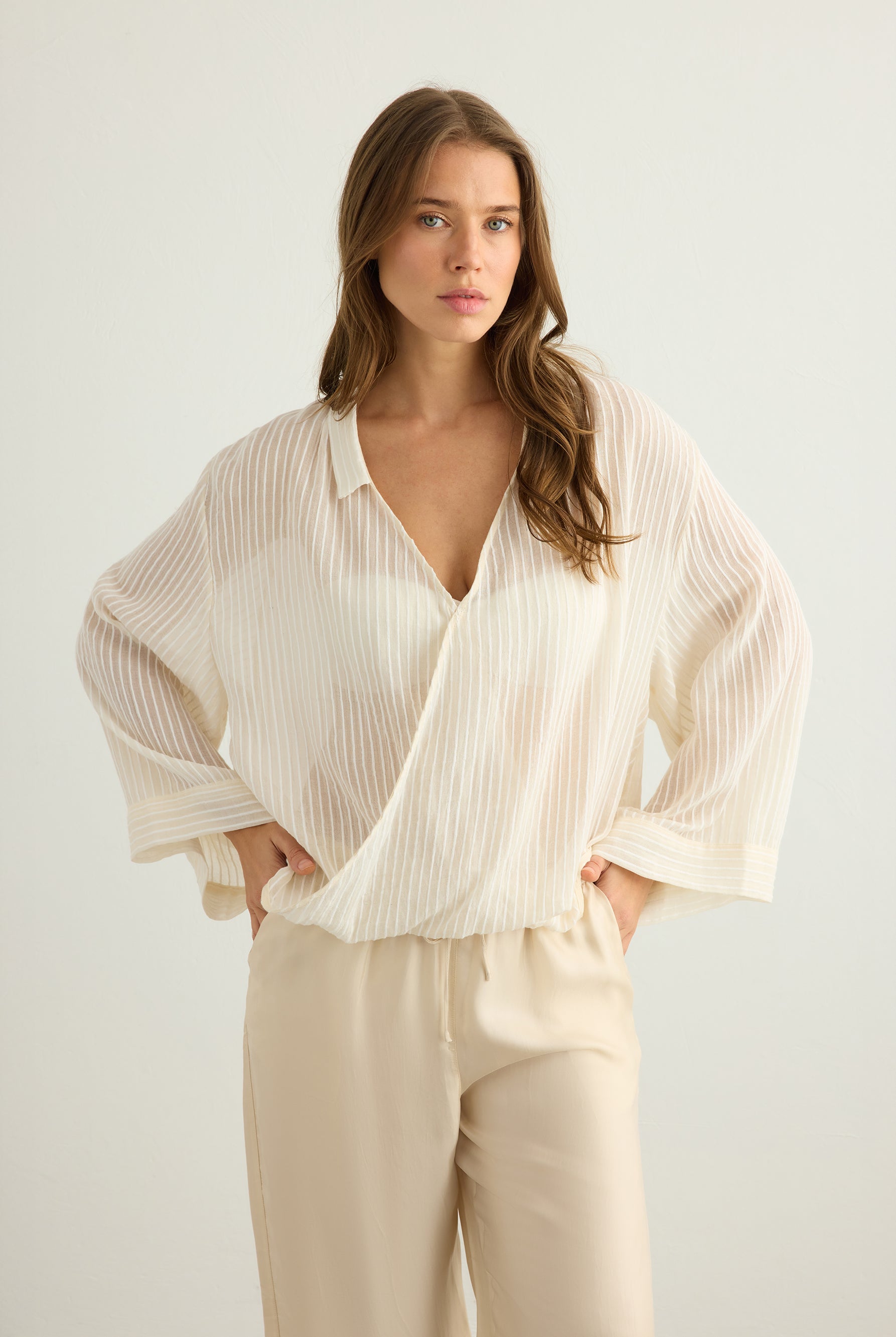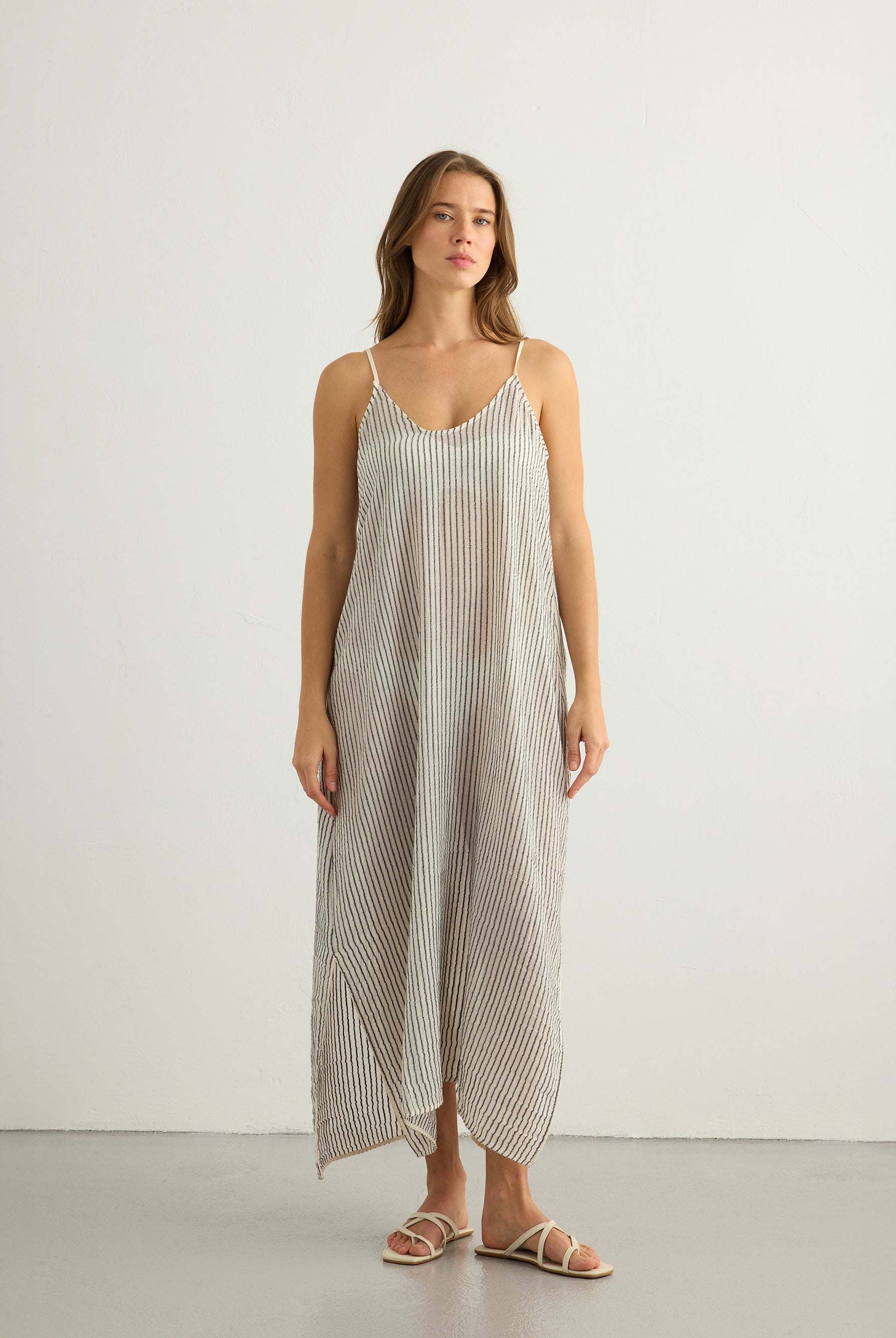 A playful yet timeless exploration of pattern. This collection reimagines classic stripes in layered textures and natural tones, crafted from 100% Organic Turkish cotton. Effortless silhouettes meet rhythmic lines, creating pieces made for everyday ease and summer light.