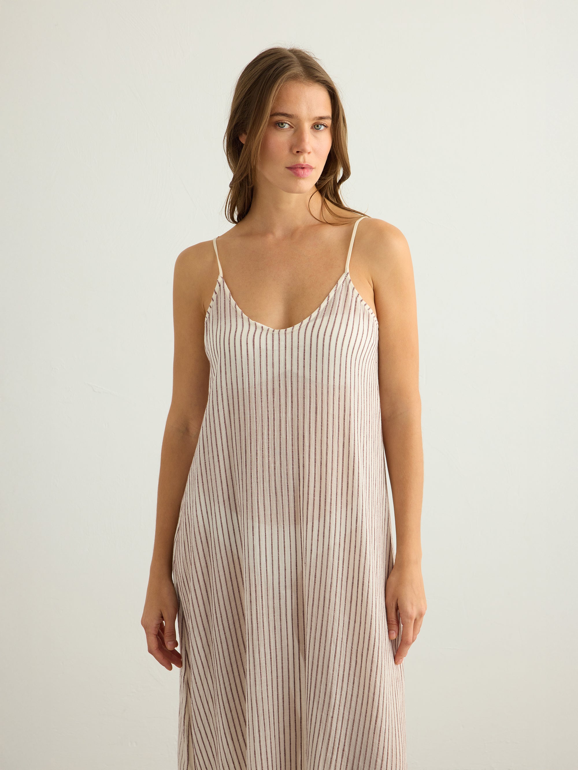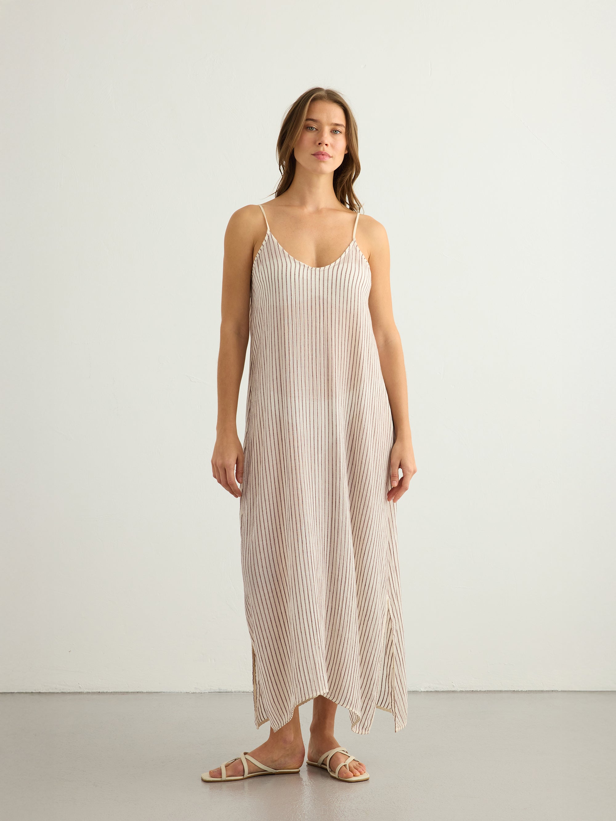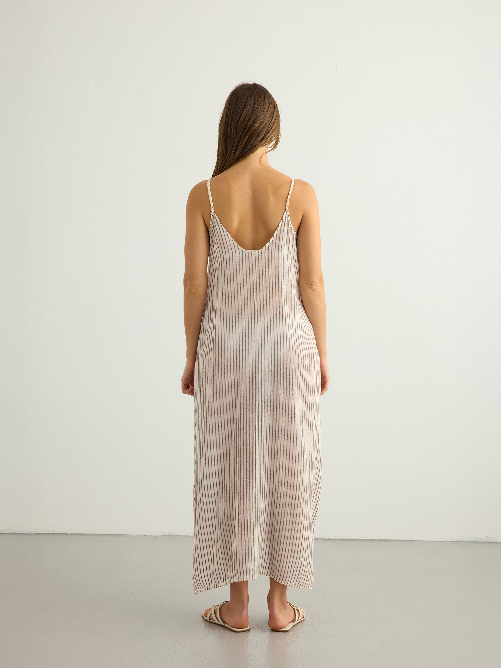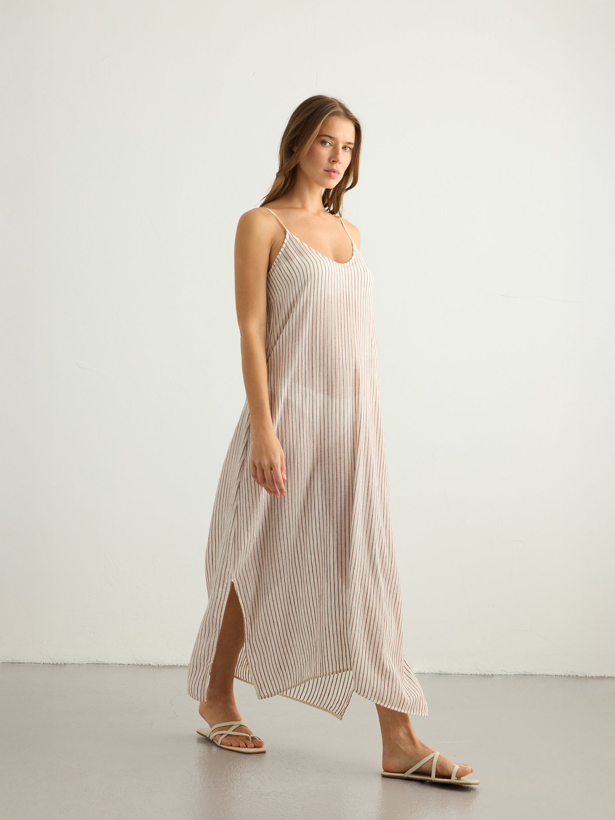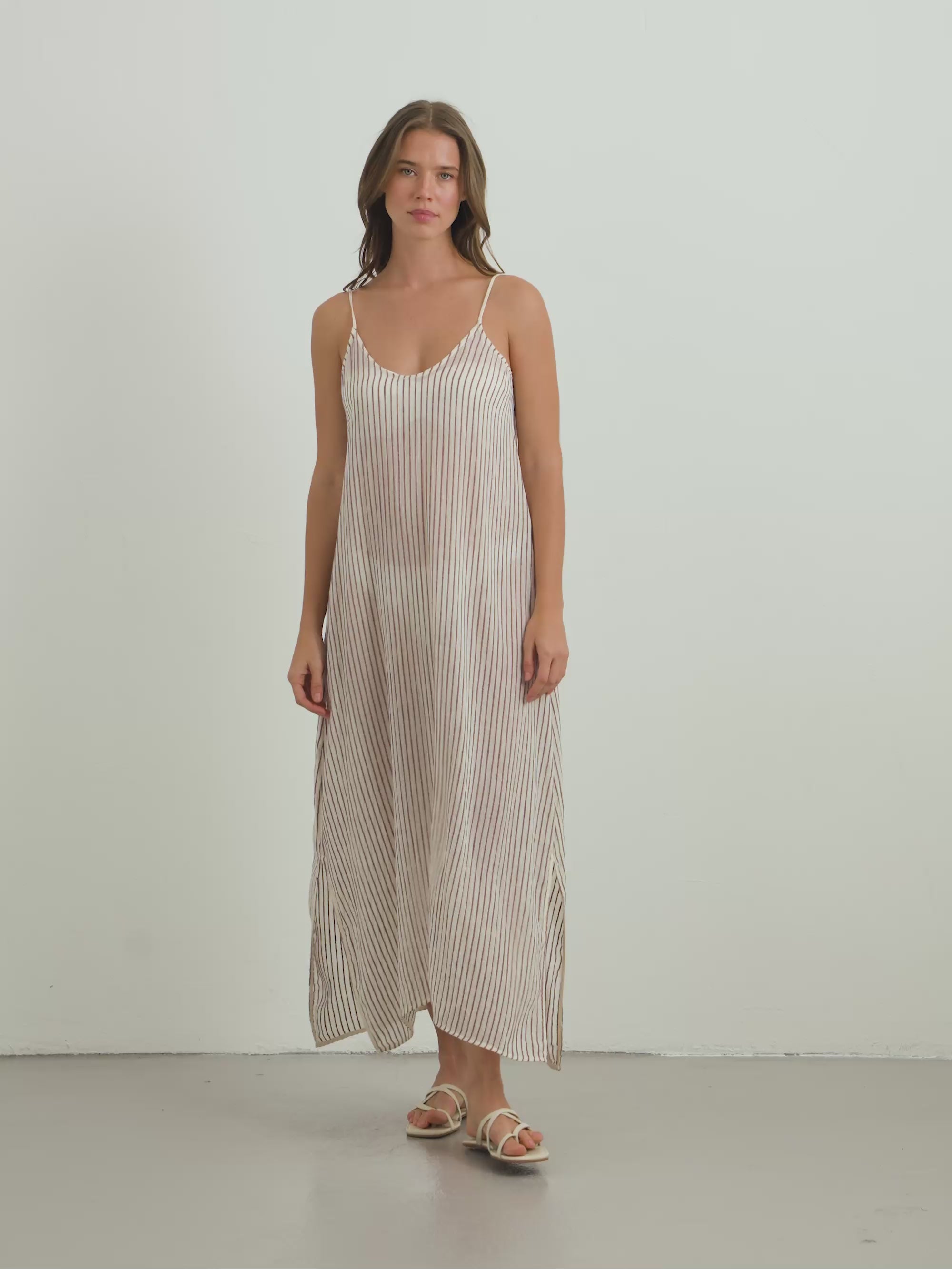 One of our top selling styles, the Yaz Dress Burgundy Stripes is crafted in breathable lightweight material that defines easy-breezy summer dressing. “Yaz” means summer in Turkish, and the spirit of summer is captured in this stylish maxi silhouette. Understated, yet luxurious details include daring side slits and adjustable straps for customized wear. This might just be your new favorite dress.