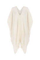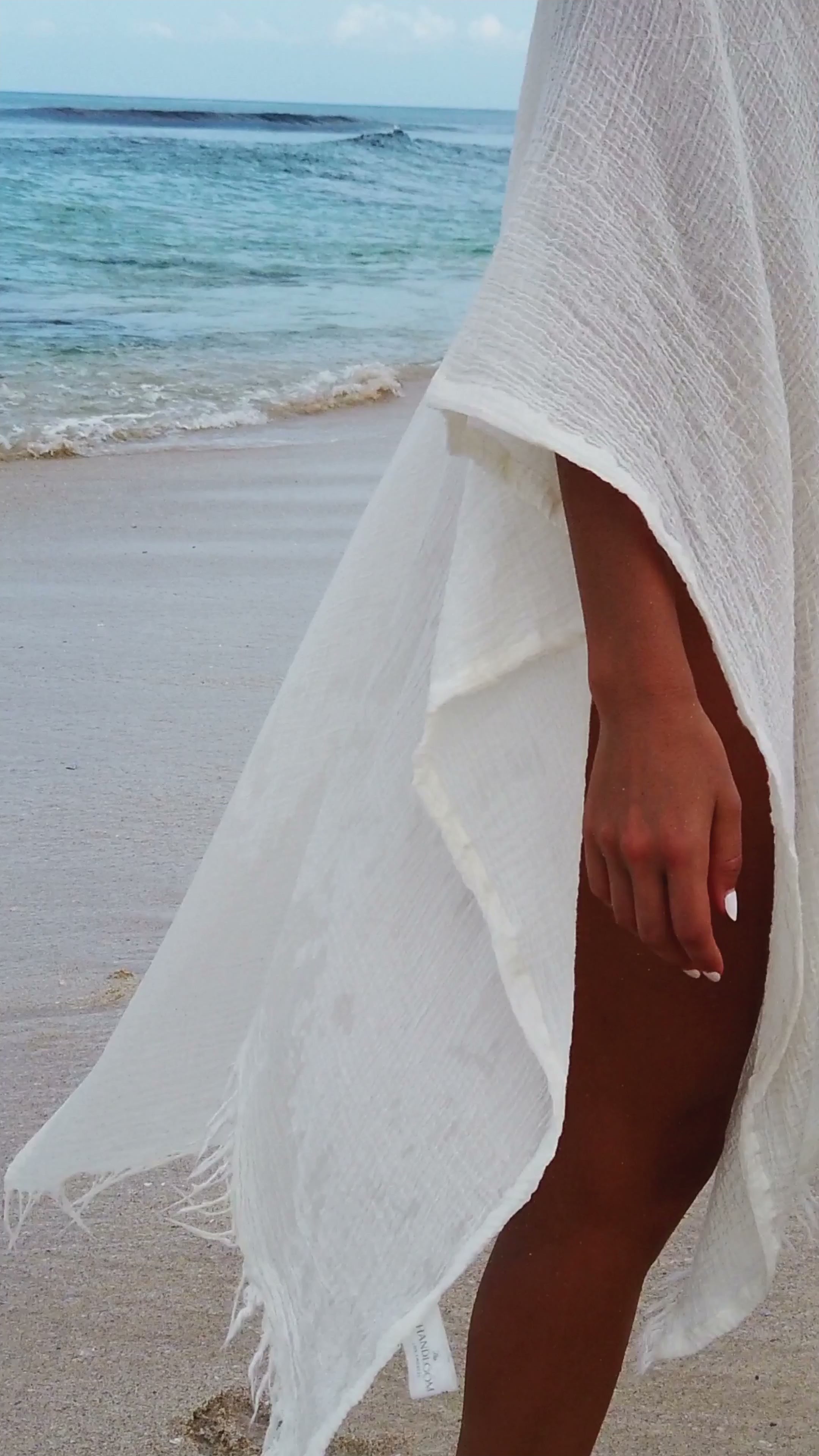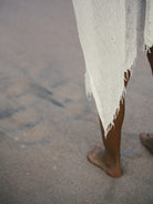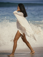 Make a memorable statement by the sea or in the lounge with the hand loomed Ava Kimono Natural. An asymmetric frayed hem along with side slits, add movement and flow to a roomy drape. Featured artisanal striped motifs woven into its flowy fabric which boasts a linen-like feel. Breathable fibers and naturally built-in cooling properties make this the perfect beach kaftan.