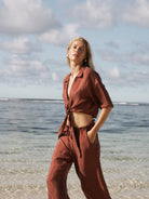 Flowing mid-rise pants designed for effortless elegance, featuring an elasticated waistband with adjustable drawstrings and practical side pockets. With their relaxed wide-leg silhouette, these pants offer a timeless yet modern style. The lightweight fabric offers a subtle sheen and soft drape. A longer version of the matching shorts, these pants pair seamlessly with the Lucid Tie Shirt or Lucid Knot Top for a coordinated look, perfect for relaxed days or elevated occasions.