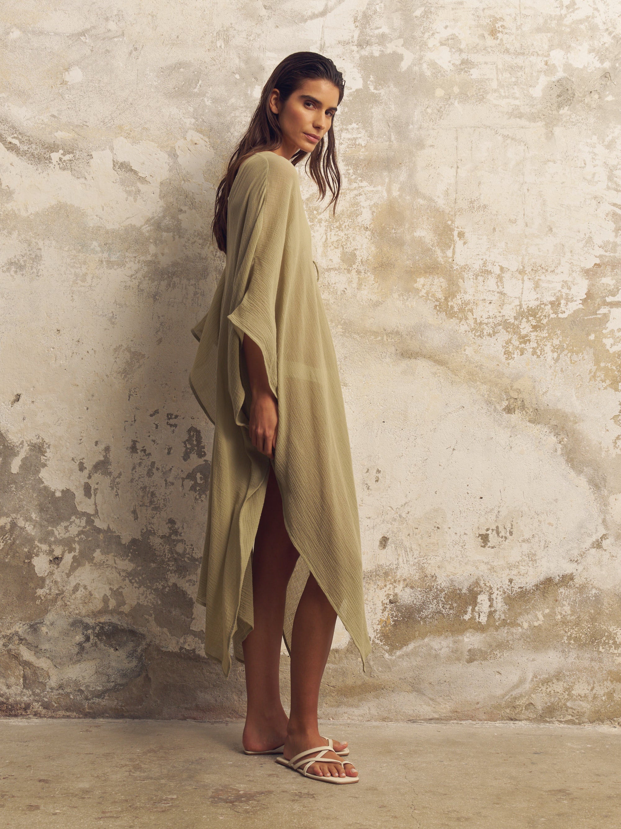 Bodrum Ties Kaftan - Khaki Green