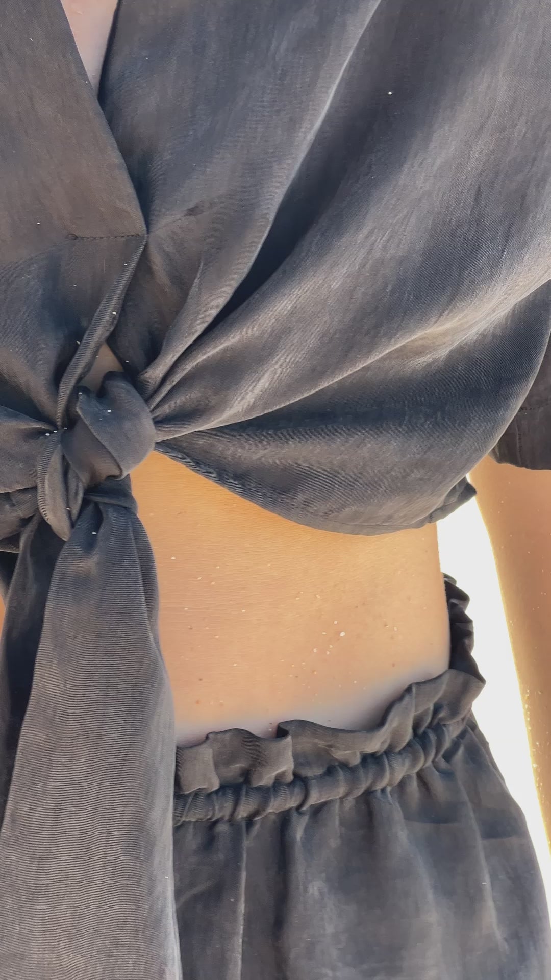 These lightweight shorts blend comfort and sophistication with a relaxed, easy fit. The fabric offers a subtle sheen and breathable feel, perfect for warm weather. Designed with an elasticated drawstring waist and practical side pockets, they pair effortlessly with our matching Lucid Tie Shirt or Lucid Knot Top for a coordinated, polished look, or can be styled with any favorite wardrobe piece for laid-back elegance.