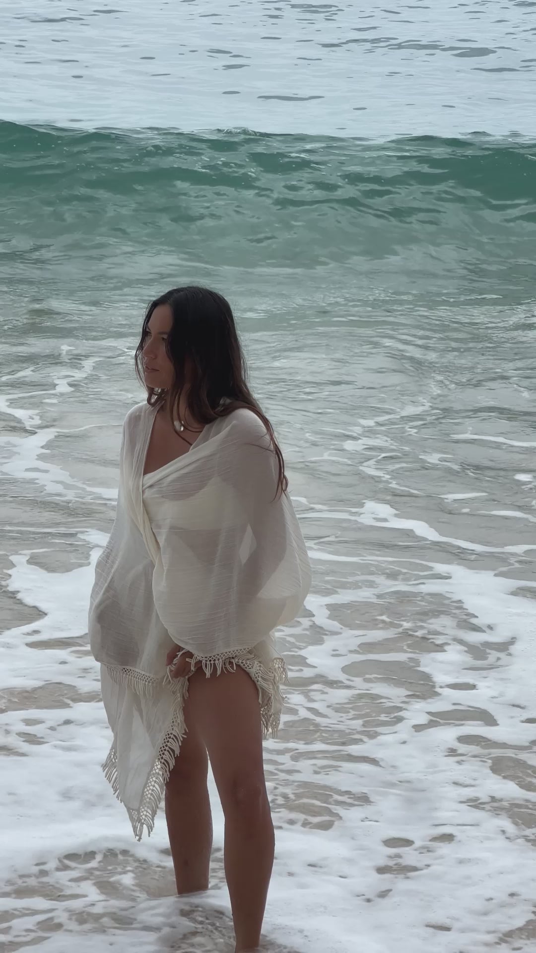 This kimono embodies effortless elegance with its sheer, lightweight texture and fluid silhouette. Designed with an open front and delicate fringe detailing, it offers a breezy sophistication that moves beautifully with every step. Perfect for layering, this versatile piece transitions seamlessly from sun-drenched beach days to balmy evenings, adding a touch of refined bohemian charm to any look.