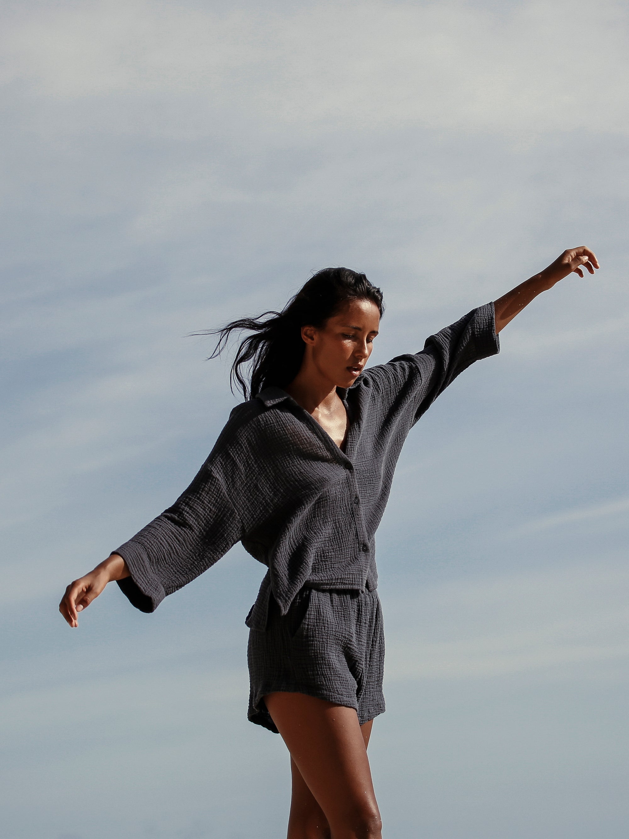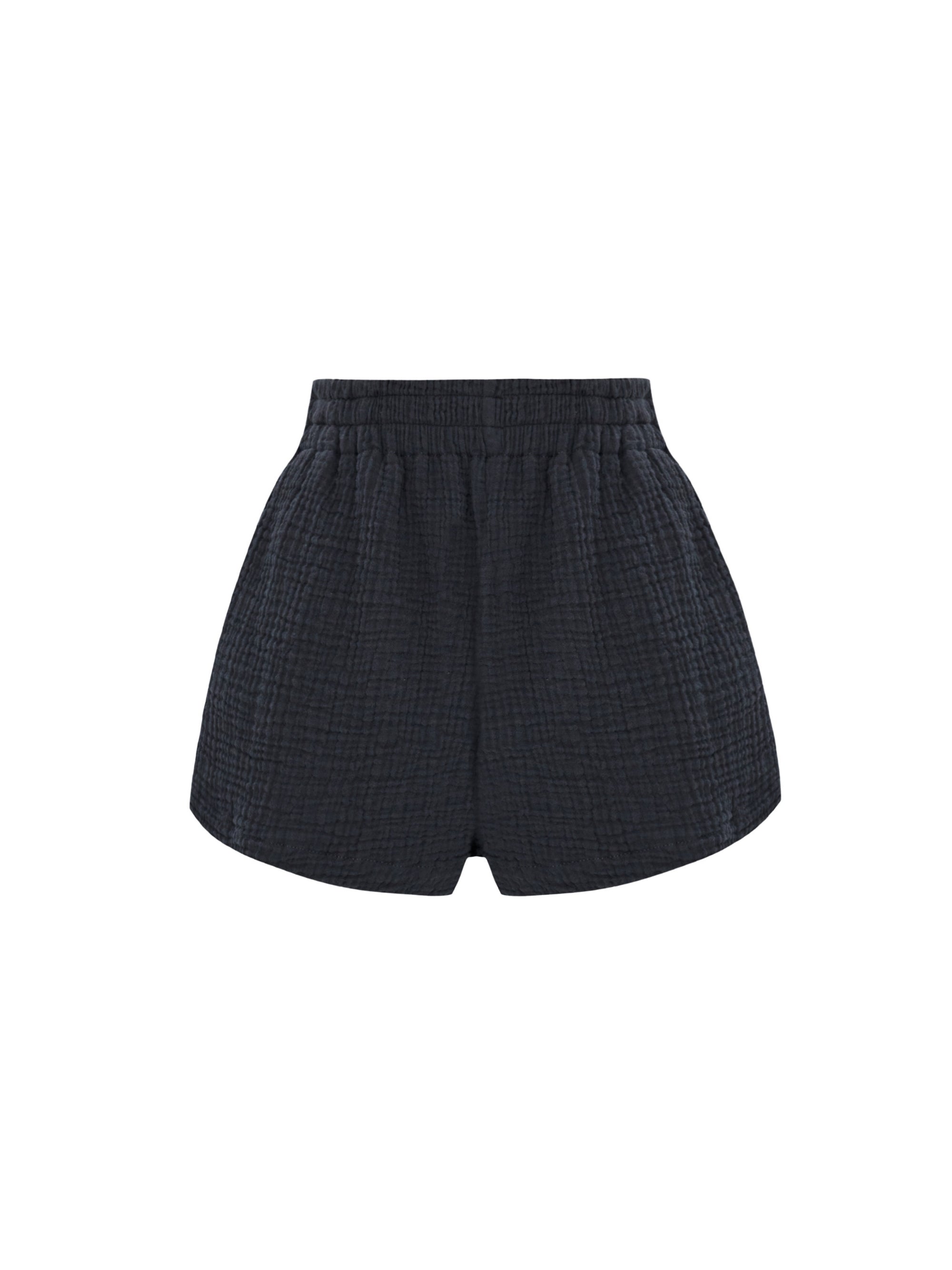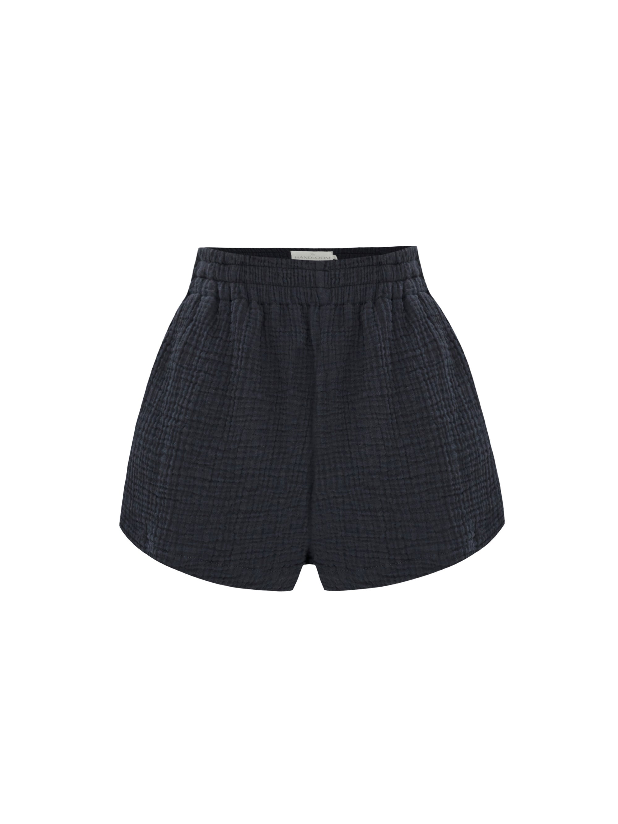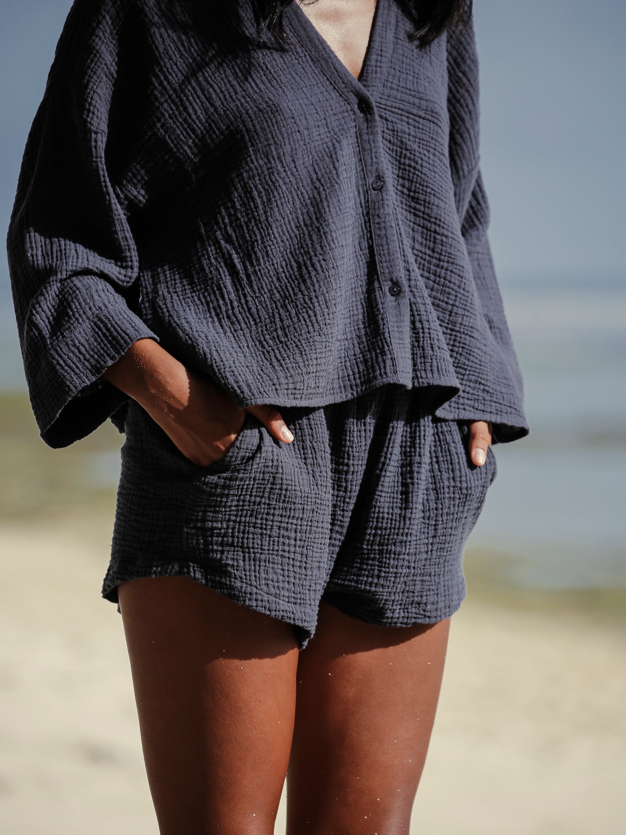 Effortless Echo Boy Short Navy is an ideal style for brunch dates or a coffee break. Designed with a breeze from 70’s, will be a timeless piece in your wardrobe that withstands trends for supporting slow fashion. Made with sustainability in mind, this short features breathable fibers. This high elastic waisted short is slightly oversized with side pockets, allowing you to move freely throughout the day.