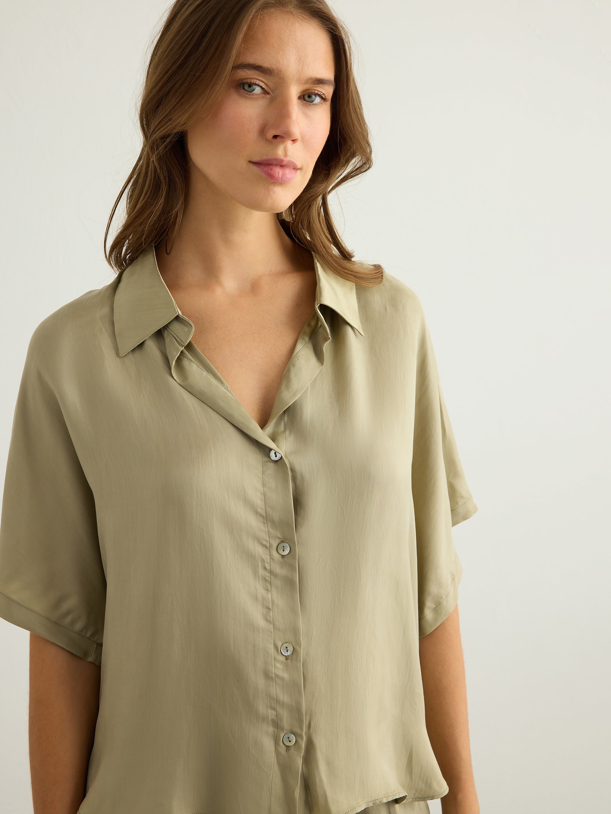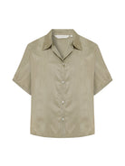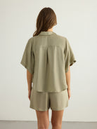 An easy, everyday shirt designed for warm-weather dressing. Crafted from lightweight Tencel with a soft, fluid feel, this short-sleeve silhouette features a classic collar, button-down front and a relaxed shape that falls effortlessly on the body. Finished with a pleated back yoke for subtle volume and movement. It can be styled with Lucid Flow Tie Shorts or Lucid Flow Tie Pants for an effortlessly coordinated look.