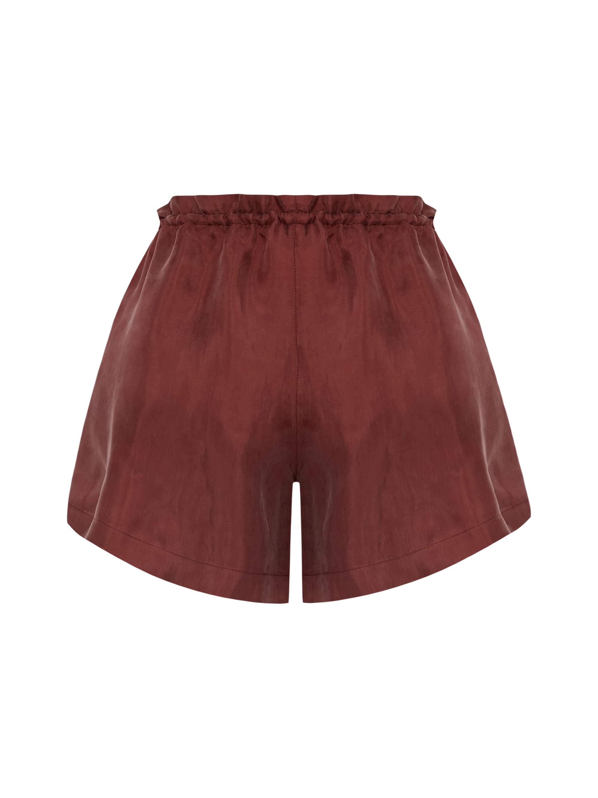 These lightweight shorts blend comfort and sophistication with a relaxed, easy fit. The fabric offers a subtle sheen and breathable feel, perfect for warm weather. Designed with an elasticated drawstring waist and practical side pockets, they pair effortlessly with our matching Lucid Tie Shirt or Lucid Knot Top for a coordinated, polished look, or can be styled with any favorite wardrobe piece for laid-back elegance.