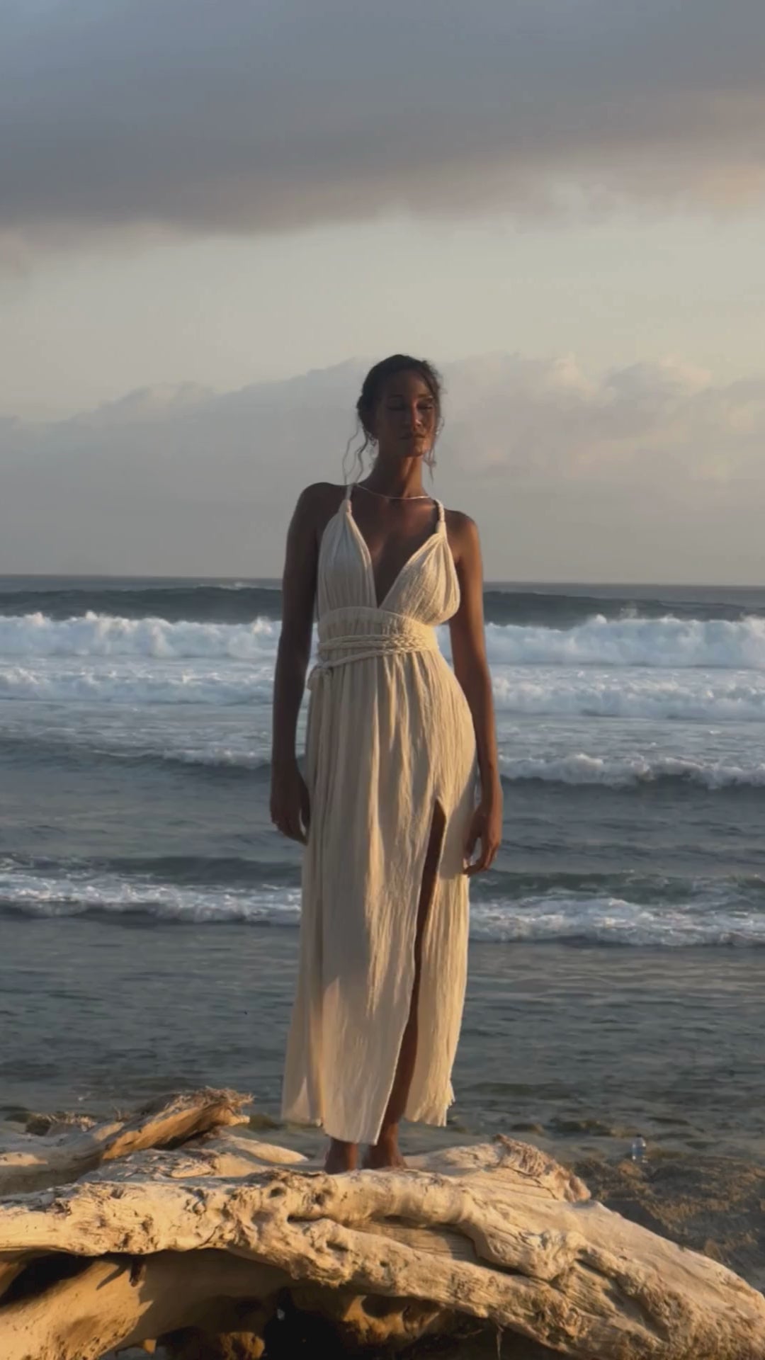 Feel like a Greek goddess with the long Muse Braided Straps Dress Natural, in a breezy silhouette that makes you feel like you are in heaven. Muse dress is a statement piece that will not go unnoticed. Deep side slits featured with adjustable spaghetti waist and back straps, make it fits at the best shape to your body.