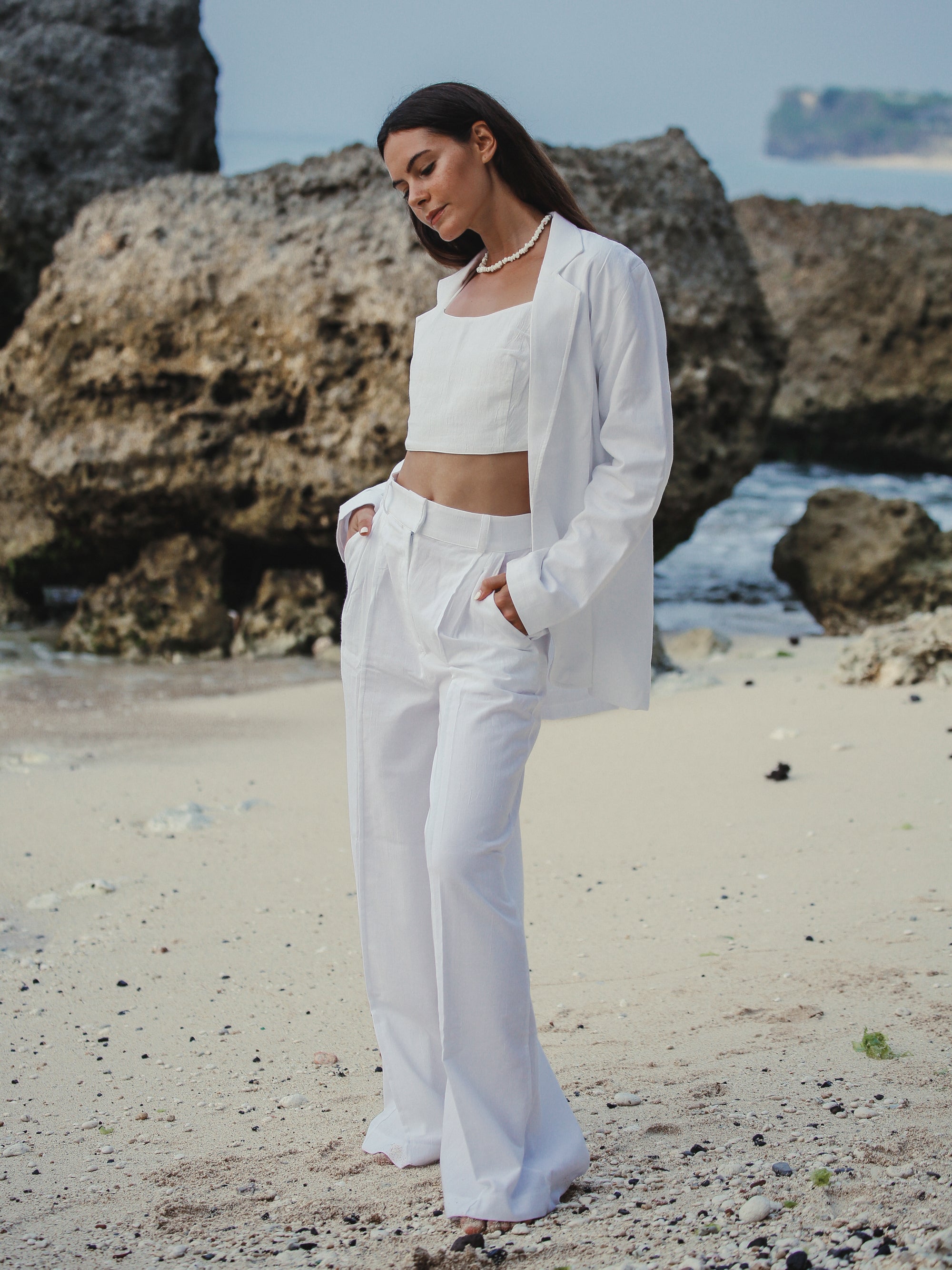 Combining the timeless appeal of structured workwear, the Pera Blazer White has been crafted from a sumptuous 100% Turkish cotton blend for a lightweight, statement alternative to the everyday blazer. Boasting a relaxed fit, structured shoulders, the Pera Blazer will be your favorite piece for elegant workwear or for special occasions.