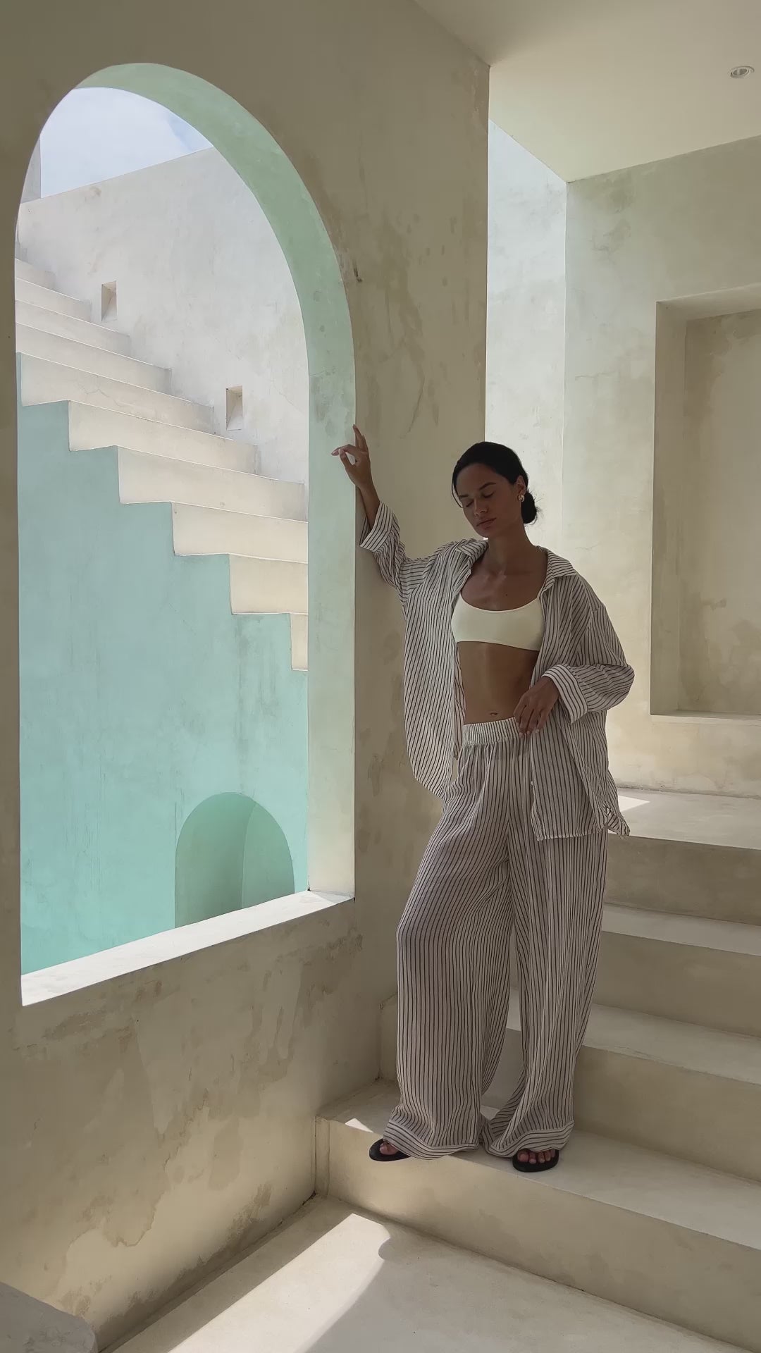 This modern Voyage Set Burgundy Stripes brings a burst of energy for body, mind and style. 100% textured cotton cues calm and coastal while light texture brings freshness to your hot summer days. The Sheer Cotton makes you feel irresistibly comfy and comes with a voyage Pant.
